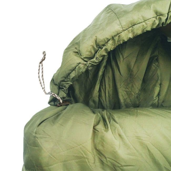 - Drawcords on the underside opening, foot-end opening, and around the hood to adjust fit around the body.