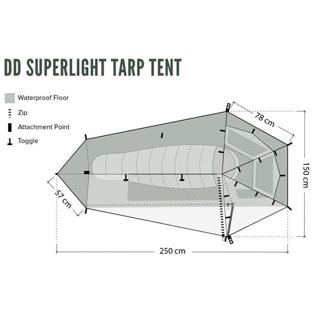 The DD SuperLight range has been a great success as it combines super strength with super light weight. The Tarp tent is a great option as it is simple to pitch, light to carry and gives you another option for camping without being too fussy.