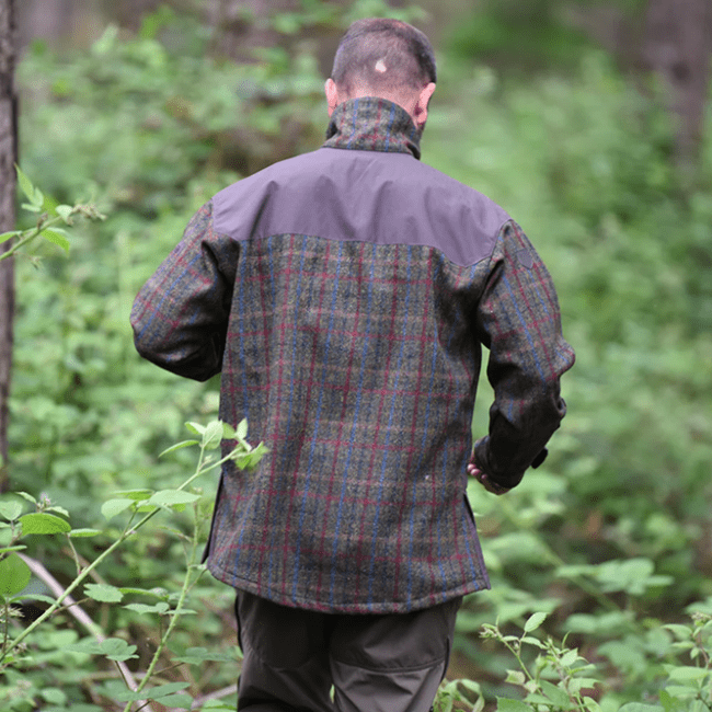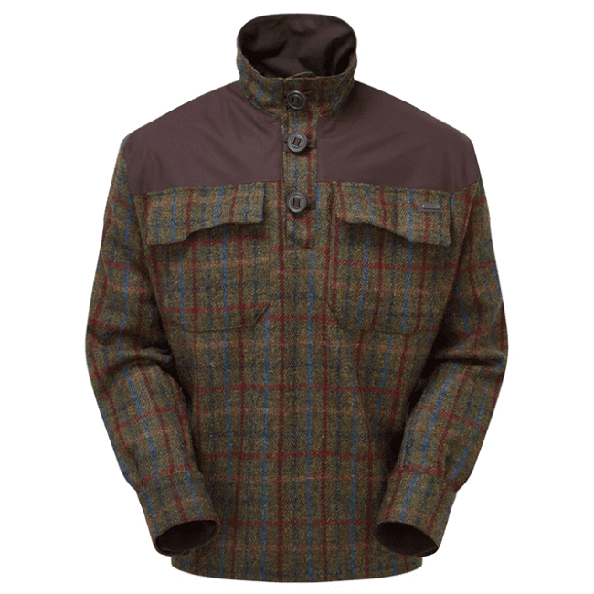 The Smock combines a Harris Tweed body with British Millerain Stay Wax Cotton panels; creating an attractive jacket which features a unique built in fire steel loop. The Harris Tweed is sustainable and naturally ember resistant while the Wax Cotton offers strong abrasion resistance over the shoulder area.