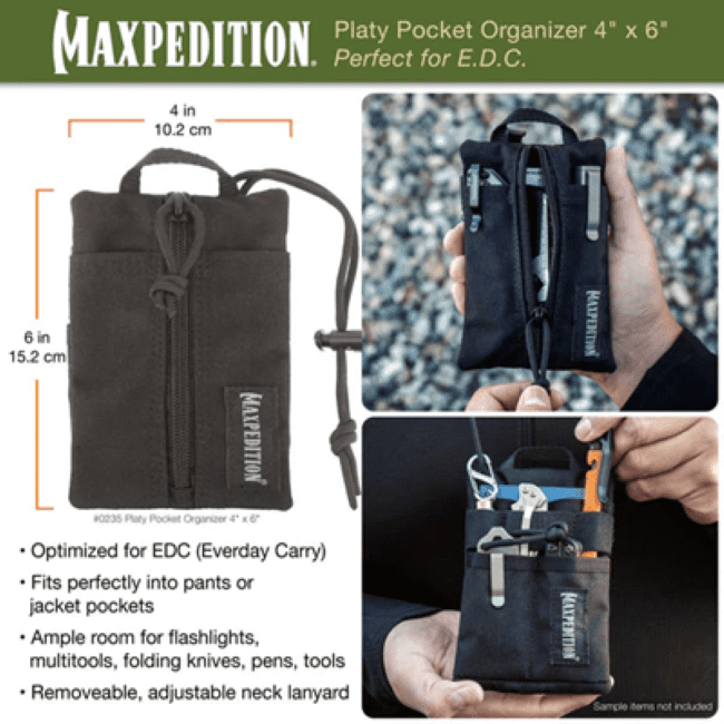 A pocket organiser is a great way of keeping everything in one place. It means you can put everything in one place rather than in 10 different pockets allowing you fast an easy access to you EDC gear.
