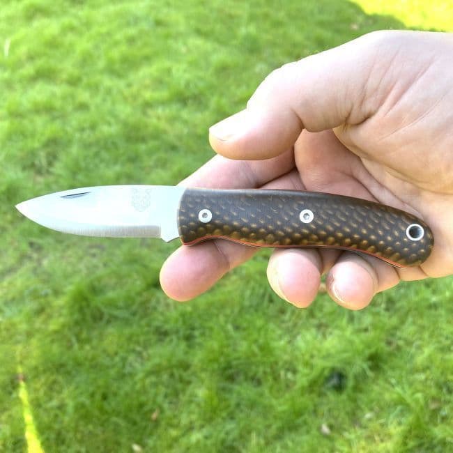 There is now a wider choice in the handle material with the EDC. We now offer it in Super Grade Curly Birch, Super Grade Turkish Walnut, Stag Antler, Canvas Micarta, Juma, Carbon Fibre, Jnuiper or Black Micarta. All the materials have their obvious qualities and are all easy to maintain and look great. Ultimately the choice is yours but If you going to be in wetter environments then Antler or Micarta is probably a better option. Naturally with timber handles they will need a little more care and will need cleaning and oiling more regularly. The more oil and product you can get into the timber the more water resistant it will become.