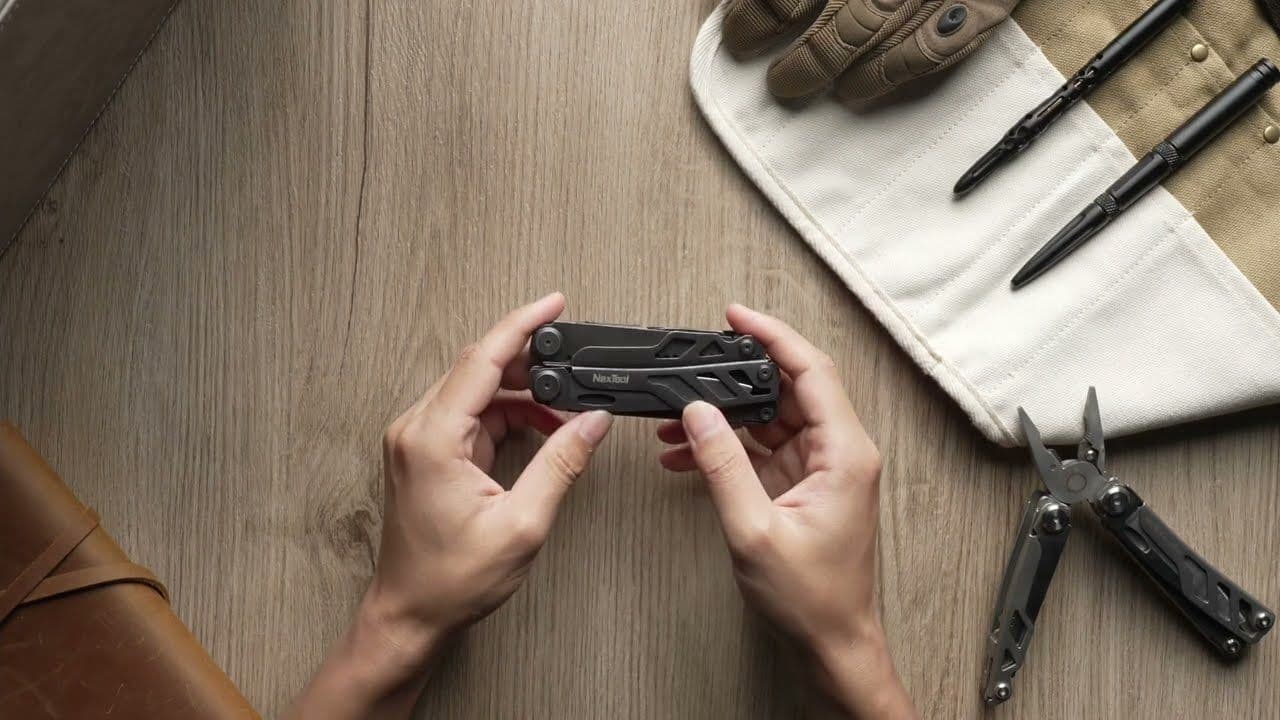 The Nextool Flagship Pro features loads of functional tools in a stylish, stainless steel frame. Its standout features are the spring loaded needlenose pliers with replaceable wirecutters included (a spare set is also included) and a stout pair of scissors which are unusually hefty for a multi-tool.