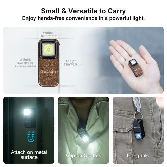 Small & Versatile to Carry: Lightweight and compact light with a versatile clip enables users to clip, hang, or magnetically attach the light to metal objects. (Only 1.91in in length and 1.06oz in weight including battery, Oclip Cu: 2.26 oz (64 g) (Including Battery).