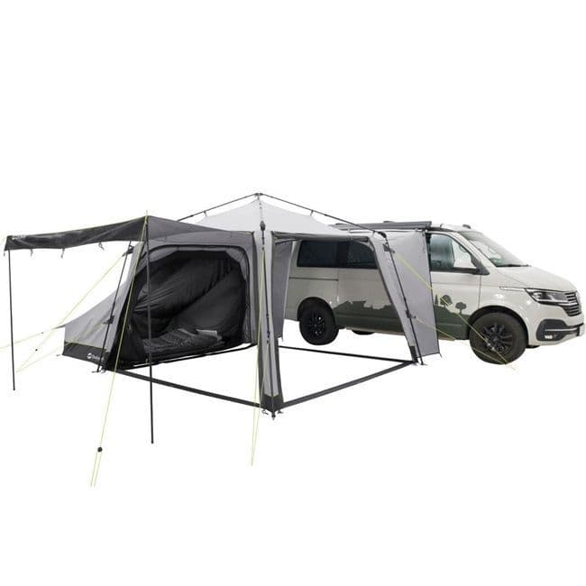 The Outwell Fastlane 300 Vehicle Connector enables you to swiftly attach the Fastlane 300 shelter to your van, providing a secure weatherproof walkway between your van and shelter. So, you can move between the two without getting wet. Great for campers like the VW California, it can also be connected to multiple vans at the same time for group shelter.