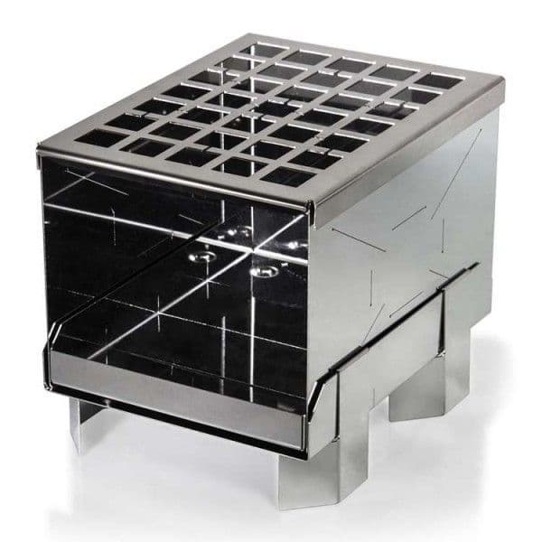 These four legs lift the Petromax Firebox FB1 up by almost 4 cm. Thanks to the distance between the Firebox and the ground, the air supply is optimized and the ground remains undamaged. The legs made of stainless steel are as easy to transport as the Firebox itself, since they can easily be packed inside the packed Firebox.