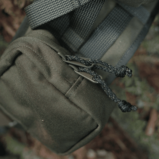 All models share the same construction and core features of internal organization, a tie-down loop and elastic webbing loops. The larger sizes also feature large, flat internal compartments and PALS webbing on the exterior sides. At the very bottom is a water drainage grommet.