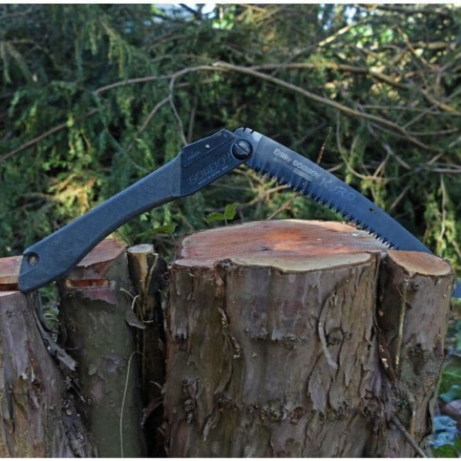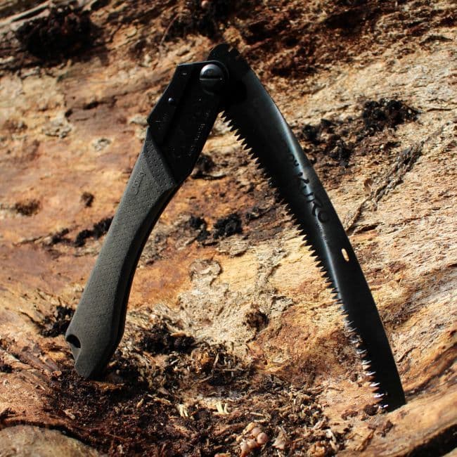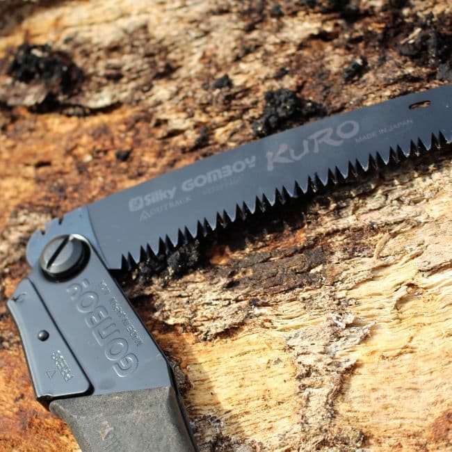 It has a curved 24cm blade and 8 teeth per 30mm which naturally holds its position in wood. This helps in delivering effective stokes whilst delivering smooth cuts on green and seasoned wood. Not forgetting the handle on the Kuro made out of Arbor Composite which contains 70% wood powder making it naturally comfortable to hold, which helps give a reliable grip when your hands are wet or greasy.