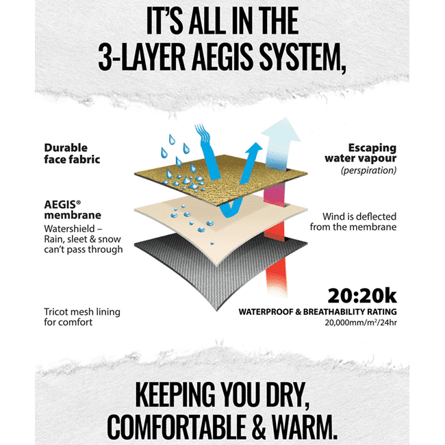 But you don’t have to risk a soaking or lug a heavy jacket, thanks to our new Sentinel Ultralite lightweight waterproof jacket – cut from our new lightweight AEGIS® Watershield 3-Layer Strata fabric. This thing is so light you’ll not even notice it in your pack.