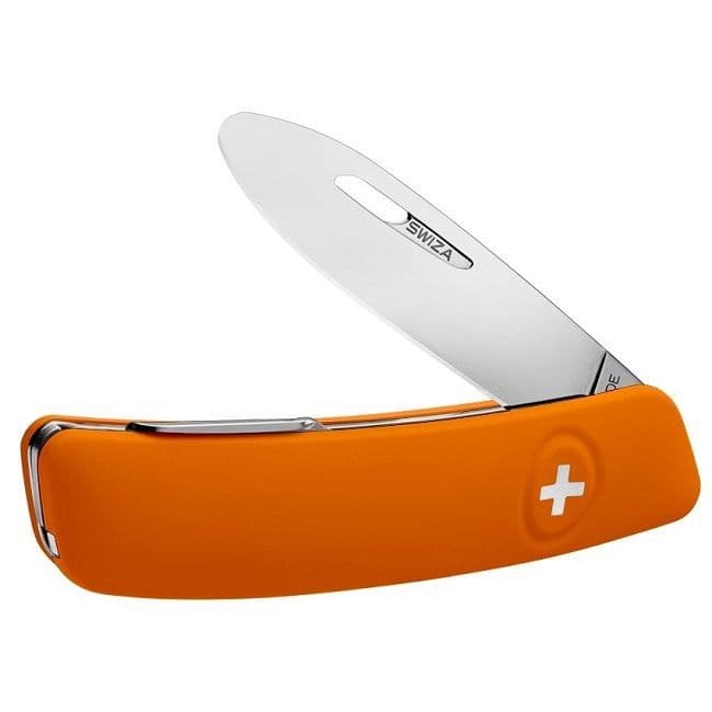 The main blade has an innovative safety lock to prevent from closing when working and the blade is unlocked by simply pressing the SWIZA cross.
